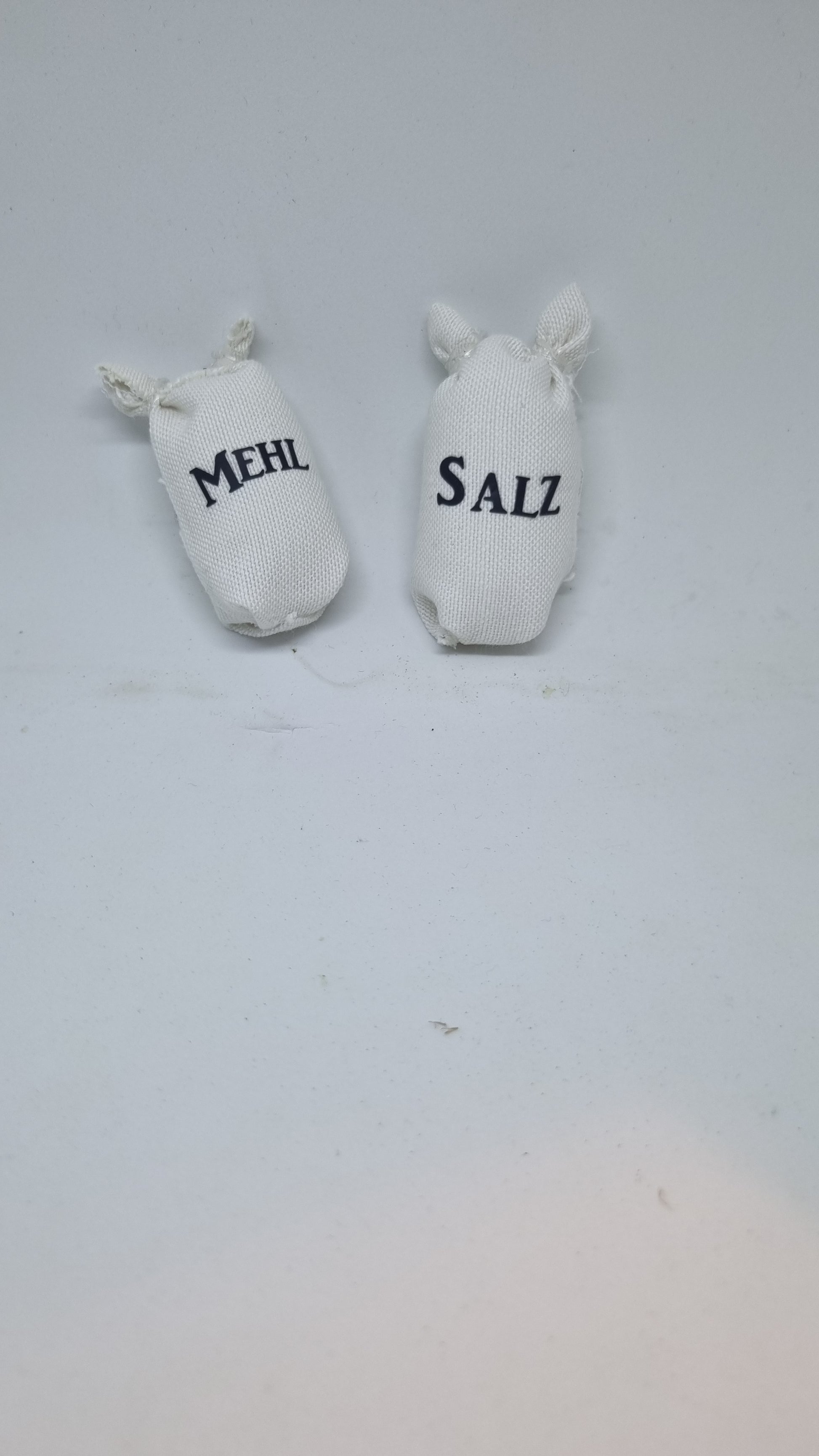 Mini Mehl und Salzsack mit Watte gefüllt. Passend zu Wichteltüren / Häuser. Jedes Stück ist von Hand gefertigt, kann daher kleine Abweichungen zum Foto haben.
