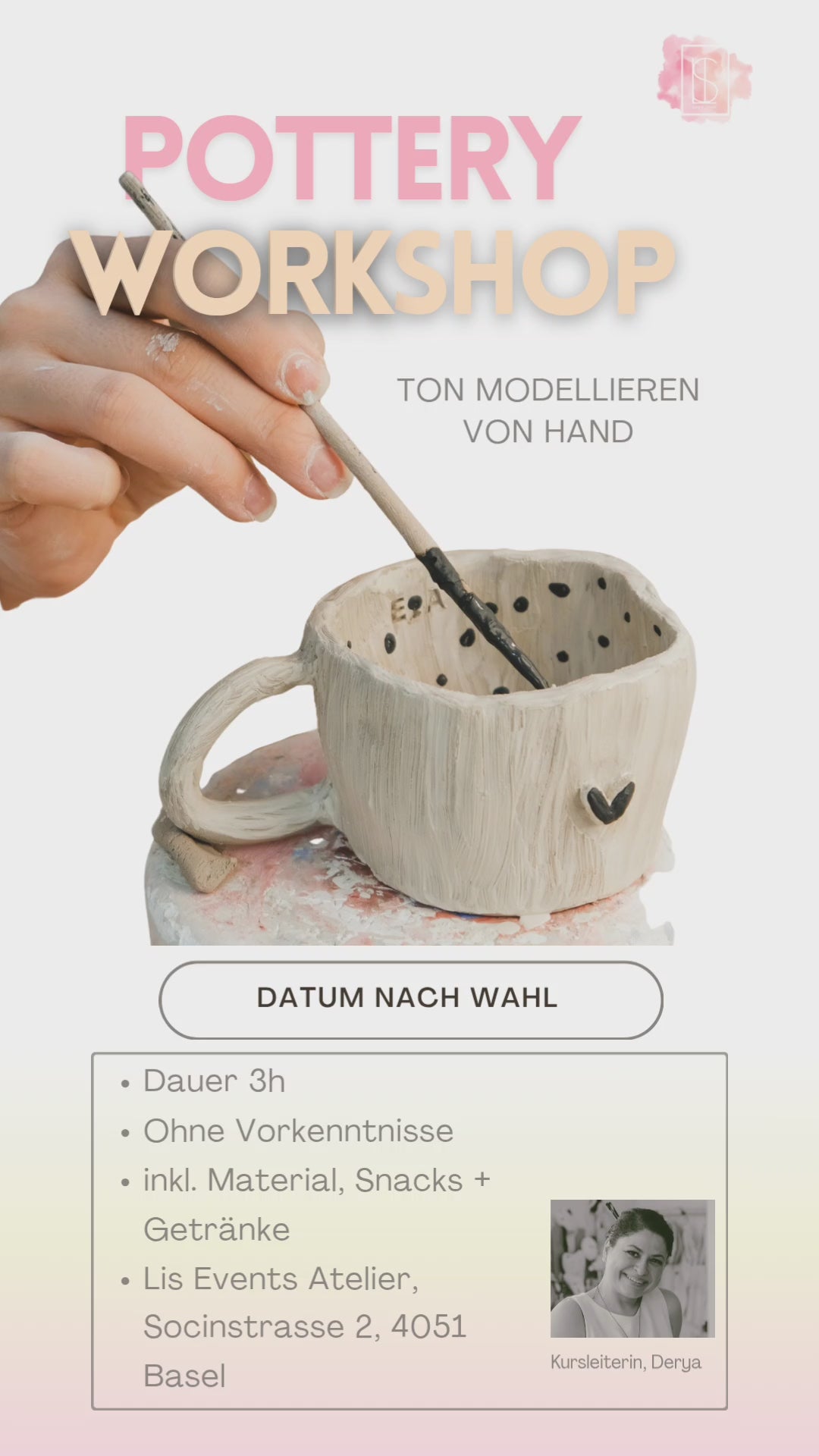 Derya oder Pari begleitet dich mit Geduld und Freude durch den Workshop. Ziel ist es, dass du abschaltest, dich mit deinen Händen verbindest und voller Stolz dein Werk mit nach Hause nimmst oder später abholst.