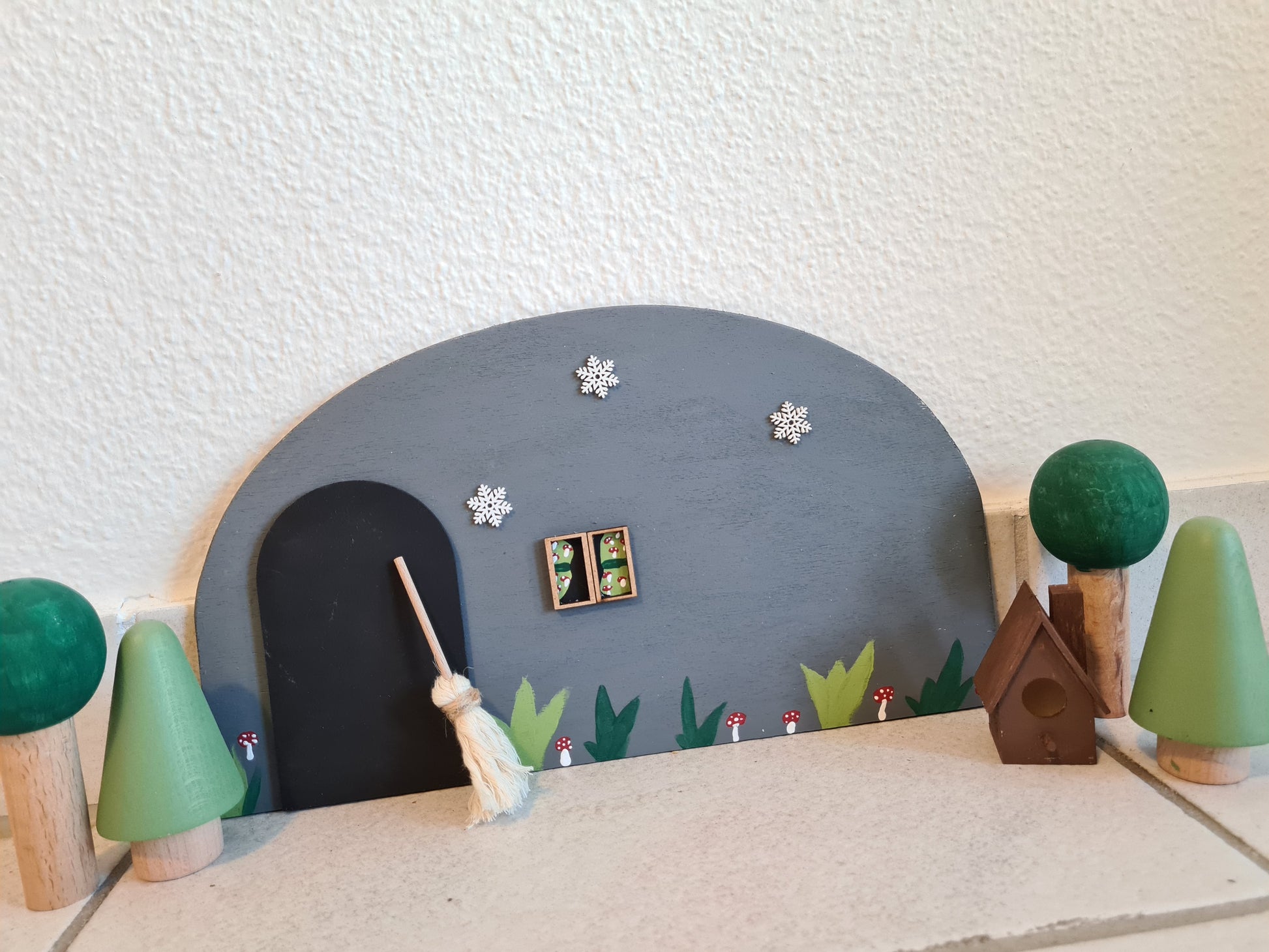Das Hölentürchen zu den Adventsgeschichten vom Zwerg Stupf. Alles handgefertigt und bemalt mit viel Liebe.